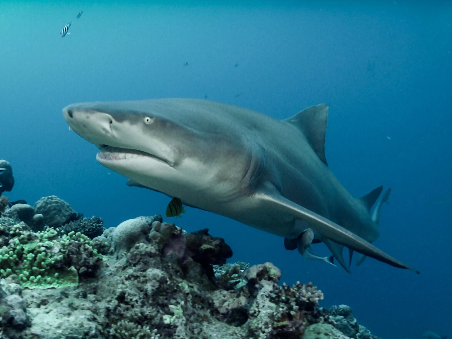 Discover Fiji Shark Dive in the Shark Reef Marine Reserve. Swim with 8 shark species & 450 fish in protected waters—expert guides, transfers included, limited spots available.